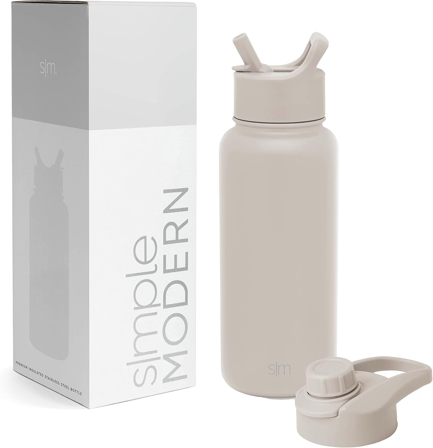 The Simple Modern Summit Stainless Steel Water Bottle – 32 oz keeps drinks cold for hours thanks to its double-wall vacuum-insulated stainless steel design. A narrow base fits many cup holders, while the included straw and chug lids let you choose your preferred sipping style.